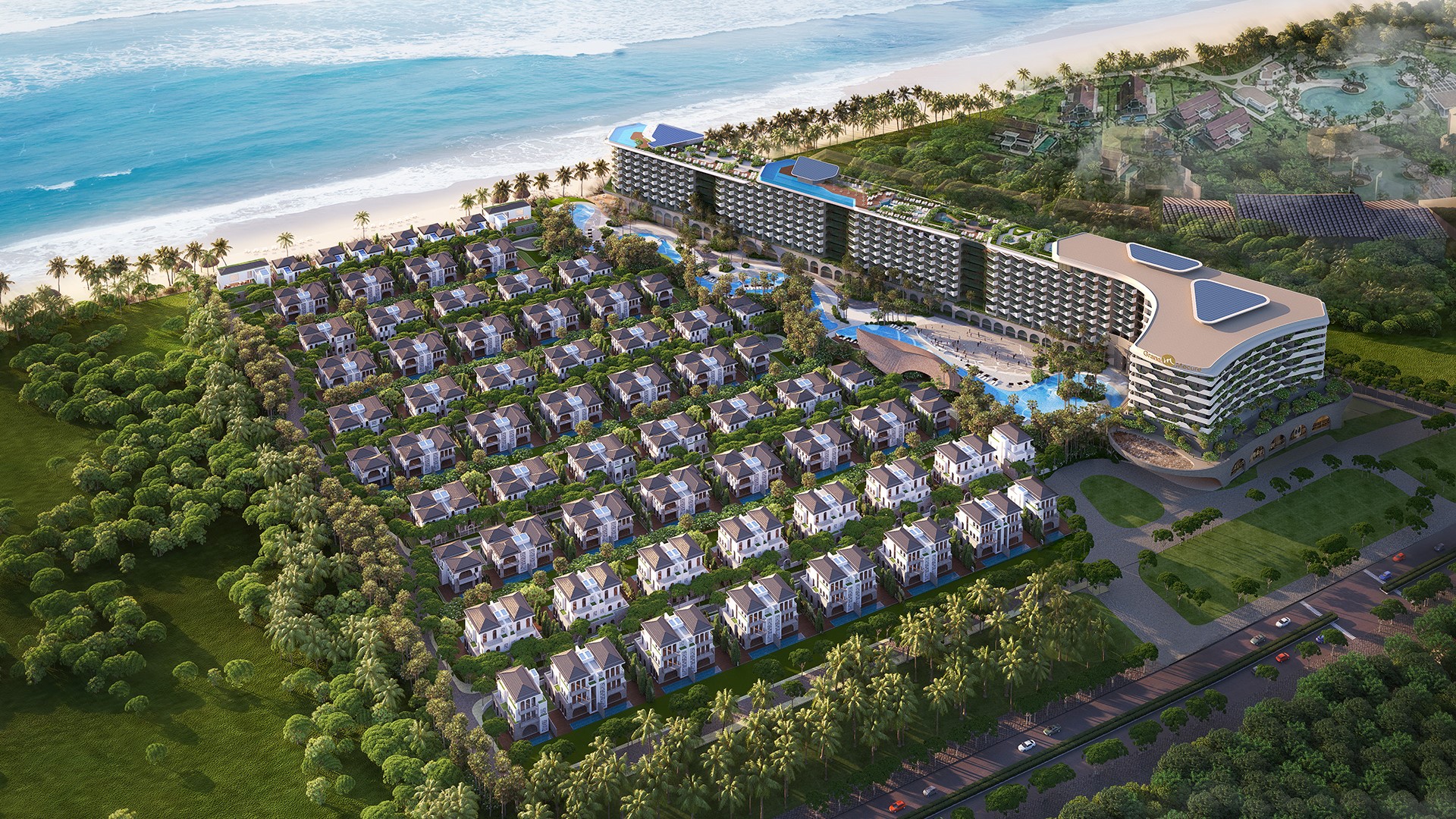 Lấy cảm hứng từ khu vườn tình yêu trong tiếng Ý, 118 căn villas được ngăn chia ước lệ bằng hàng rào hoa lá và những khu vườn rợp bóng mát. Mang đậm lối kiến trúc Á Đông kết hợp với nét hiện đại mang phong cách Ý, Grand Mercure Hoi An đem đến một không gian nghỉ dưỡng sang trọng, đẳng cấp giữa miền di sản.