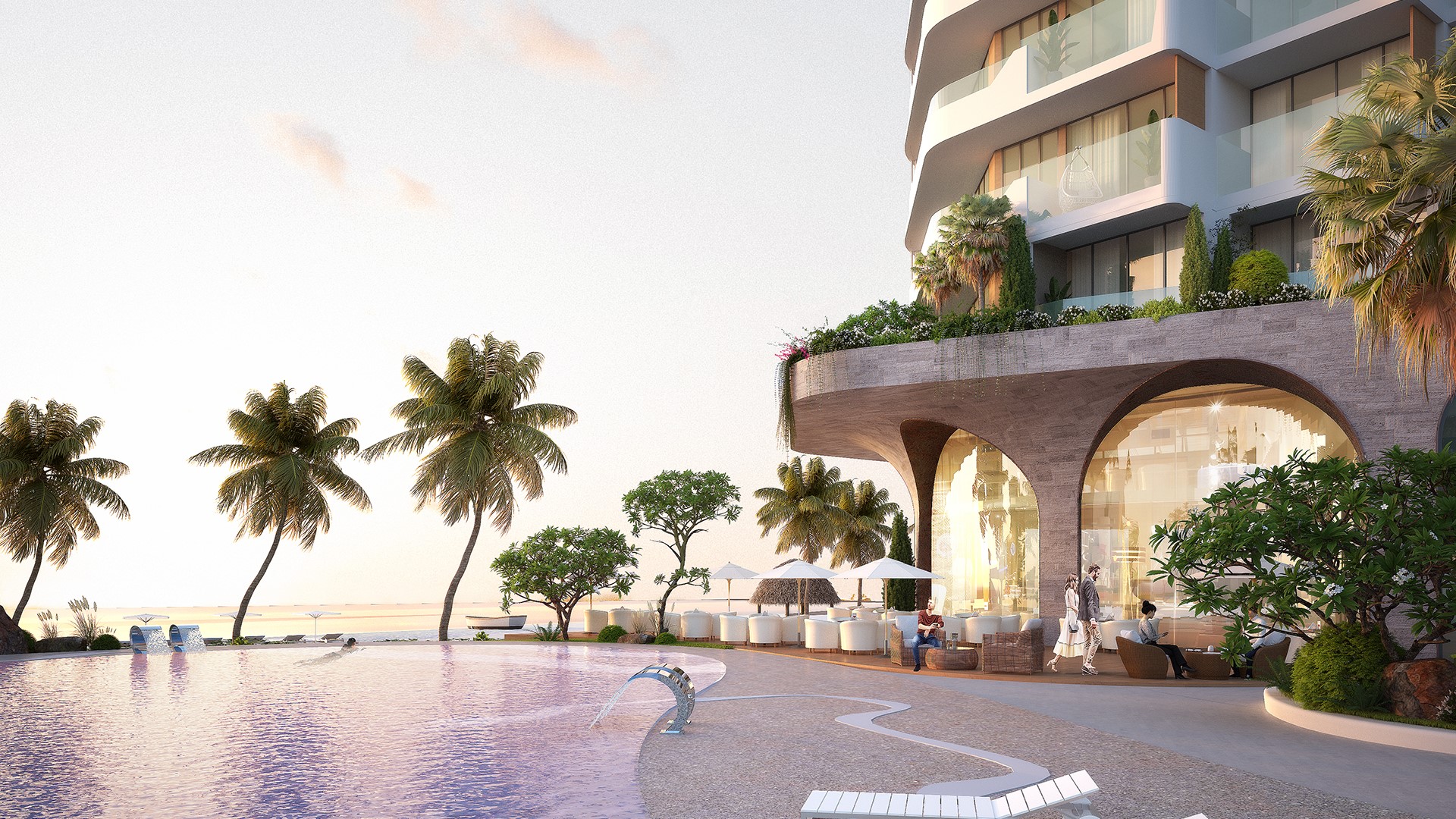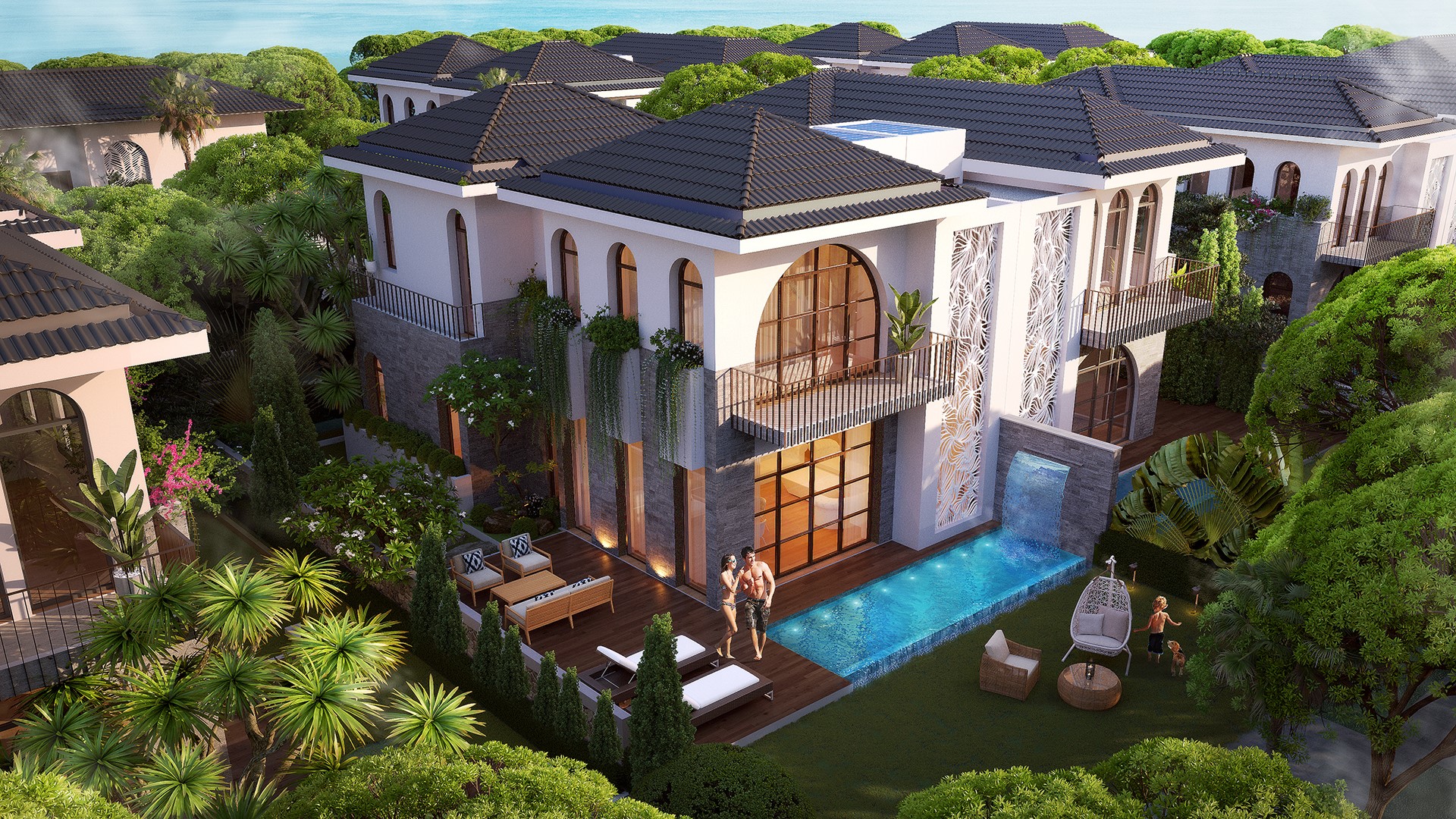 Tổng thể dự án là sự hoà quyện của 5 yếu tó: tự nhiên, kiến trúc, cảnh quan, nội thất và con người.