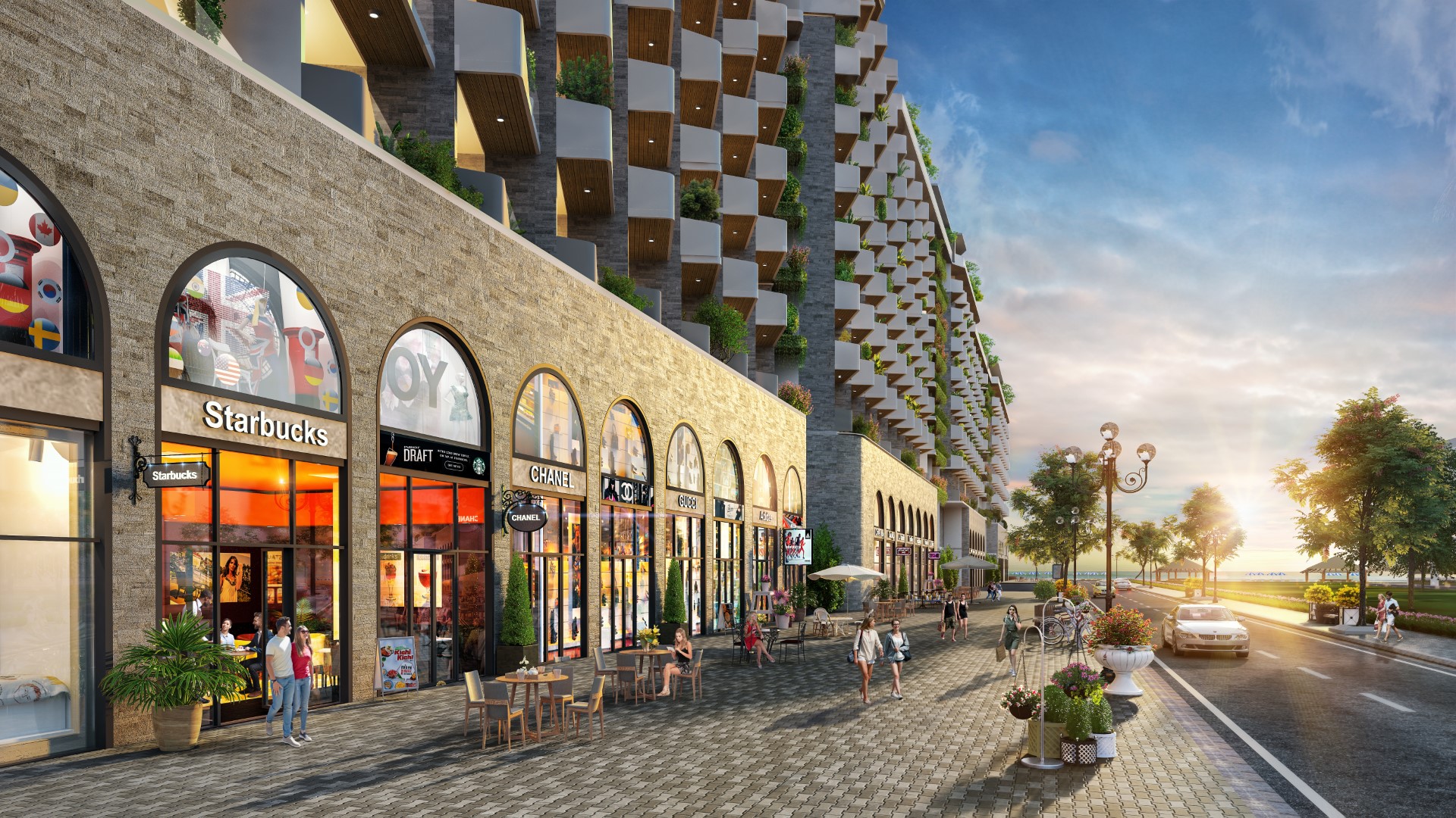 Tổng thể dự án được quy hoạch từ Làng – Sông – Phố quen thuộc của phố Cổ Hội An. Các thiết kế kiến trúc dự án được hình tượng hoá bởi hình ảnh vòm cong trong các chi tiết kiến trúc và nội thất toàn khu.